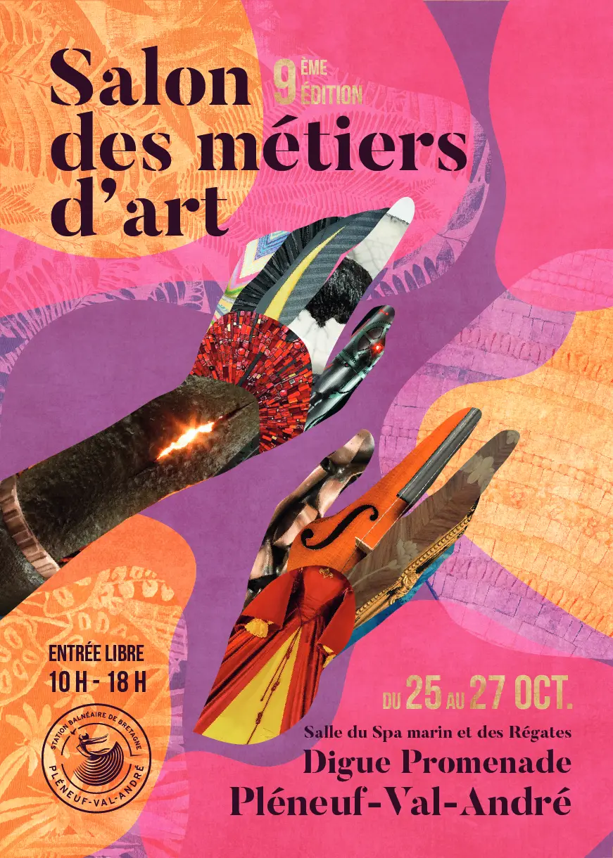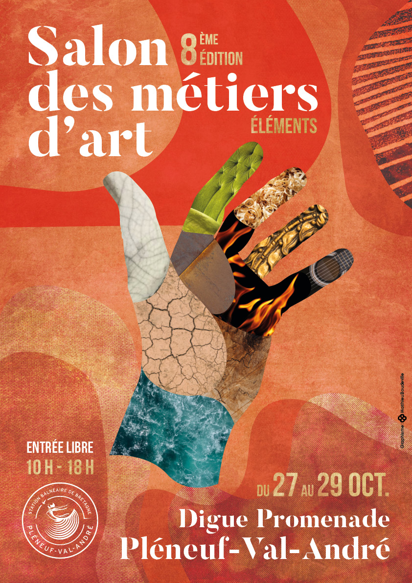 La Ville de Pléneuf Val André organise chaque année un salon des métiers d’Art fin Octobre, Florence Ratajczak directrice de la communication de la Ville, m’a sollicité pour créer les visuel de cette manifestation. Le projet m’a tout de suite plu étant moi même versé dans la pratique occasionnelle de l’artisanat.