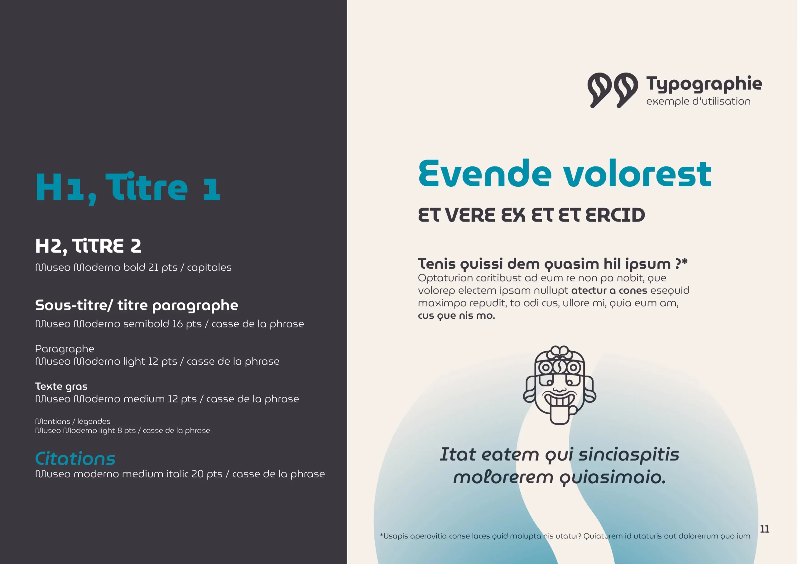 Pour le choix des couleurs je me suis inspiré du Azul maya pour le signe et d’un noir coloré pour le lettrage.